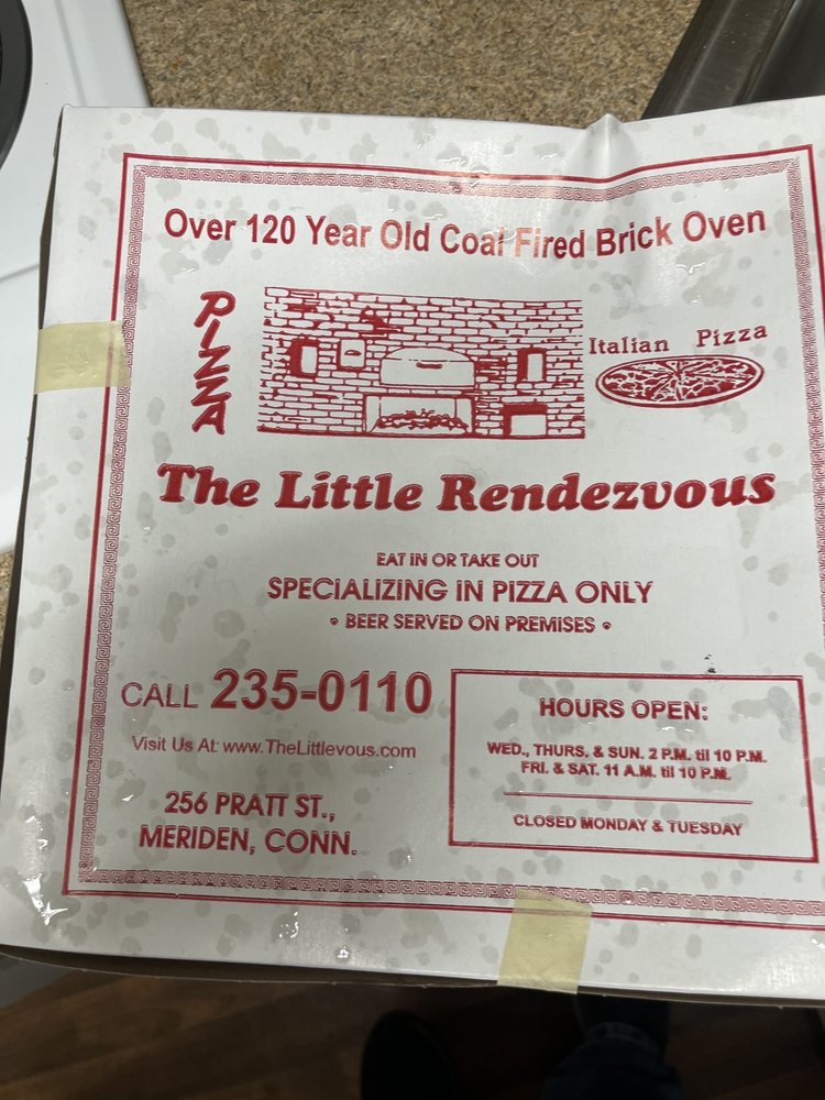 Little Rendezvous is a cozy pizza joint located in Meriden, CT. This unclaimed gem offers a range of utilities, including takeout, delivery, and catering services. The menu boasts delicious pizzas, with standout options like the tomato pie and pepperoni toppings. Customers rave about the friendly staff and the inviting atmosphere. The small dining area adds to the charm of this mom and pop establishment. Despite its unassuming appearance, Little Rendezvous serves up some of the best pizza in town, with a 130-year-old oven adding to the authenticity of the experience. If you're in the mood for a no-frills, cash-only pizza experience, Little Rendezvous is a must-visit.